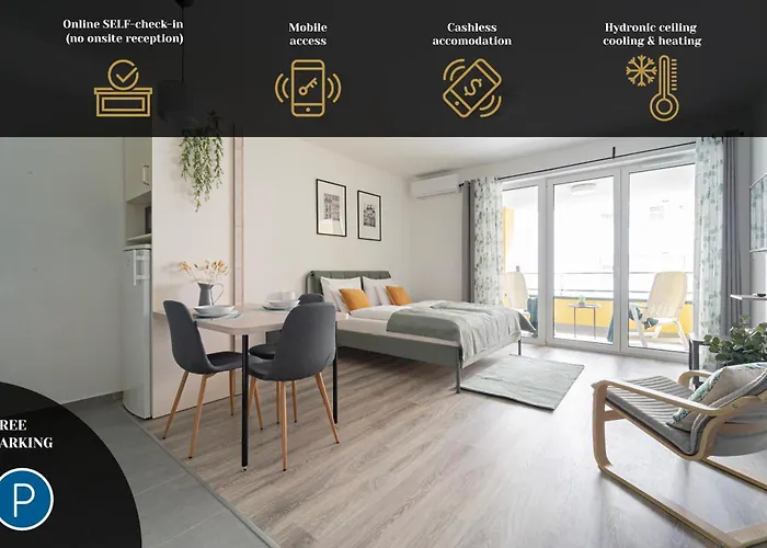 The 4-star Westside Garden Apartments By Firsthost Budapest hotel is situated in the centre of Budapest nearly 25 minutes on foot from the Eclectic-style Hungarian Parliament Building. This Budapest aparthotel provides free private parking for EUR 15 per day on site.